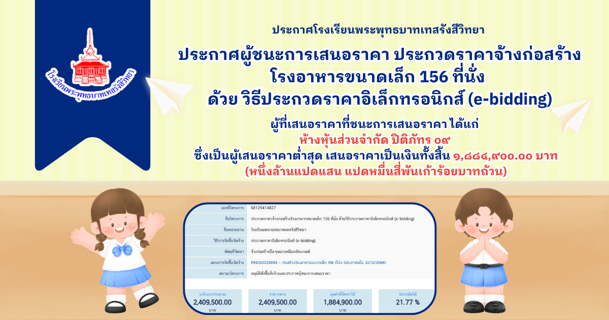 ประกาศผู้ชนะการเสนอราคา ประกวดราคาจ้างก่อสร้าง โรงอาหาร ปีงบประมาณ พ.ศ.2569