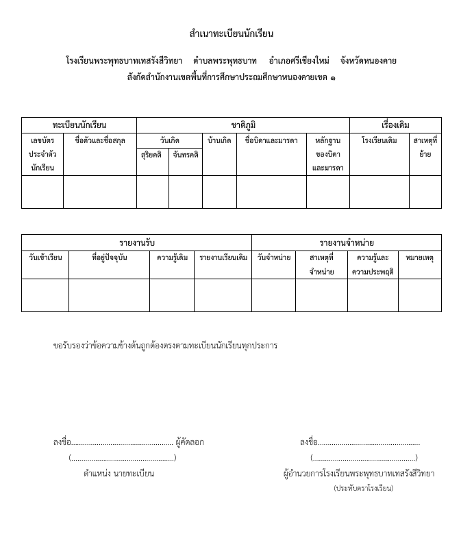 สำเนาทะเบียนนักเรียน